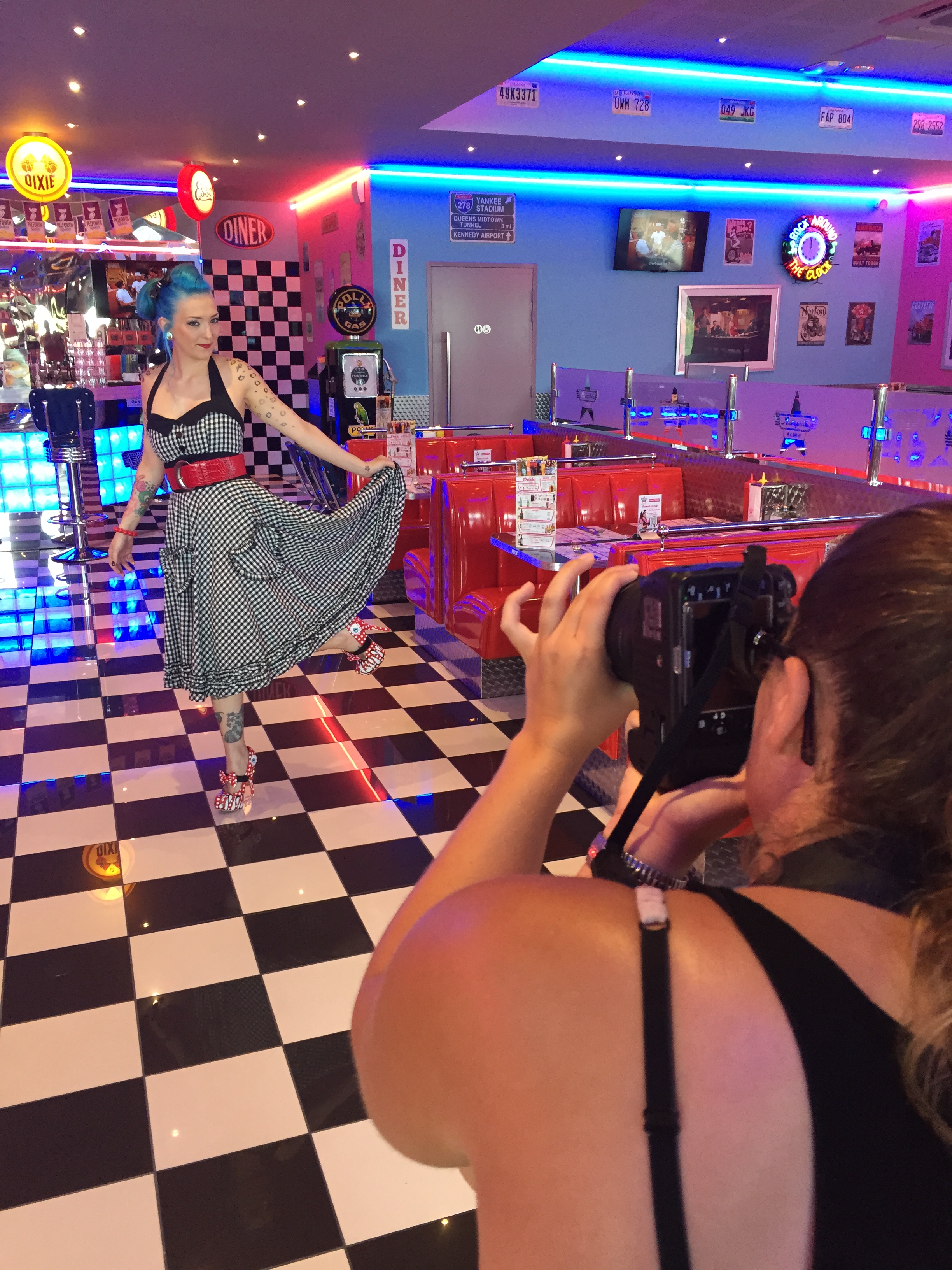Dimanche 18 juillet, nous avons fait un retour en arrière dans l’histoire, nous avons placé l’aiguille de notre machine à remonter le temps sur l’époque des pin-up américaines des années 50. En quelques minutes nous avons été projeté dans l’univers coloré et doux de ces magnifiques jeunes femmes.